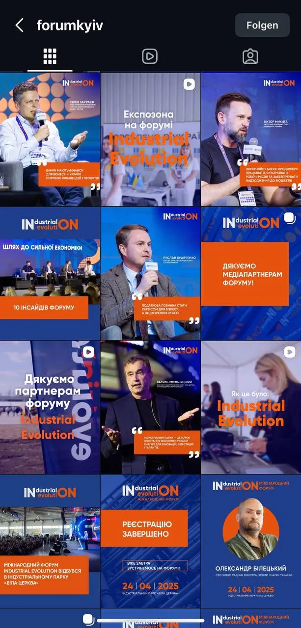 International Forum Industrial Evolution — масштабний бізнес-форум за участі Київської обласної військової адміністрації, Kyiv International Economic Forum та Індустріального парку Біла Церква. Ціль — об'єднати бізнес-лідерів, представників держсектору та галузевих експертів. Формат: офлайн-подія + онлайн live-конференція. Головна технічна проблема: квиткова платформа не підтримувала pixel-відстеження — без аналітики оптимізувати рекламу і масштабувати бюджет було неможливо.