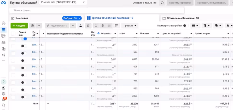 Запустили рекламу з нуля: окремі кампанії під дорослу і дитячу клініку, тестування аудиторій, перерозподіл бюджету в більш рентабельні напрямки. Впровадили "вхідні" пропозиції без демпінгу: чекапи, первинні консультації, бонуси на перший візит, пакети послуг. Пропозиція підсилювала рішення прийти, а не знецінювала бренд.