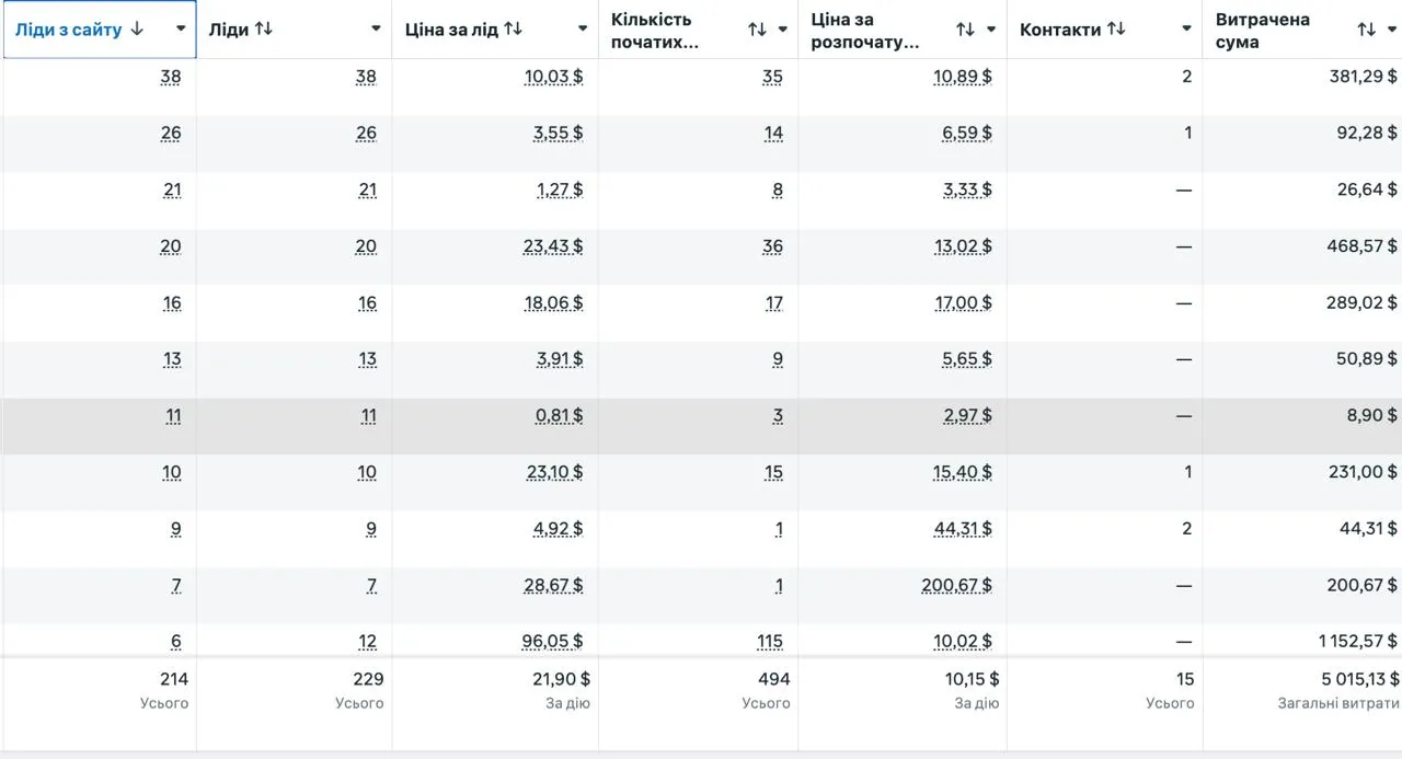 Тестування і оптимізація навіть при малому бюджеті $10 на день — система стабільно працювала без збільшення витрат.