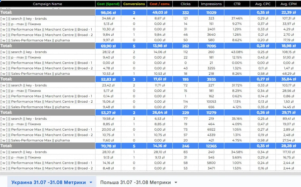 Оптимізація фіду в Google і фокус на маржинальних категоріях — бюджет пішов на товари з кращою рентабельністю.